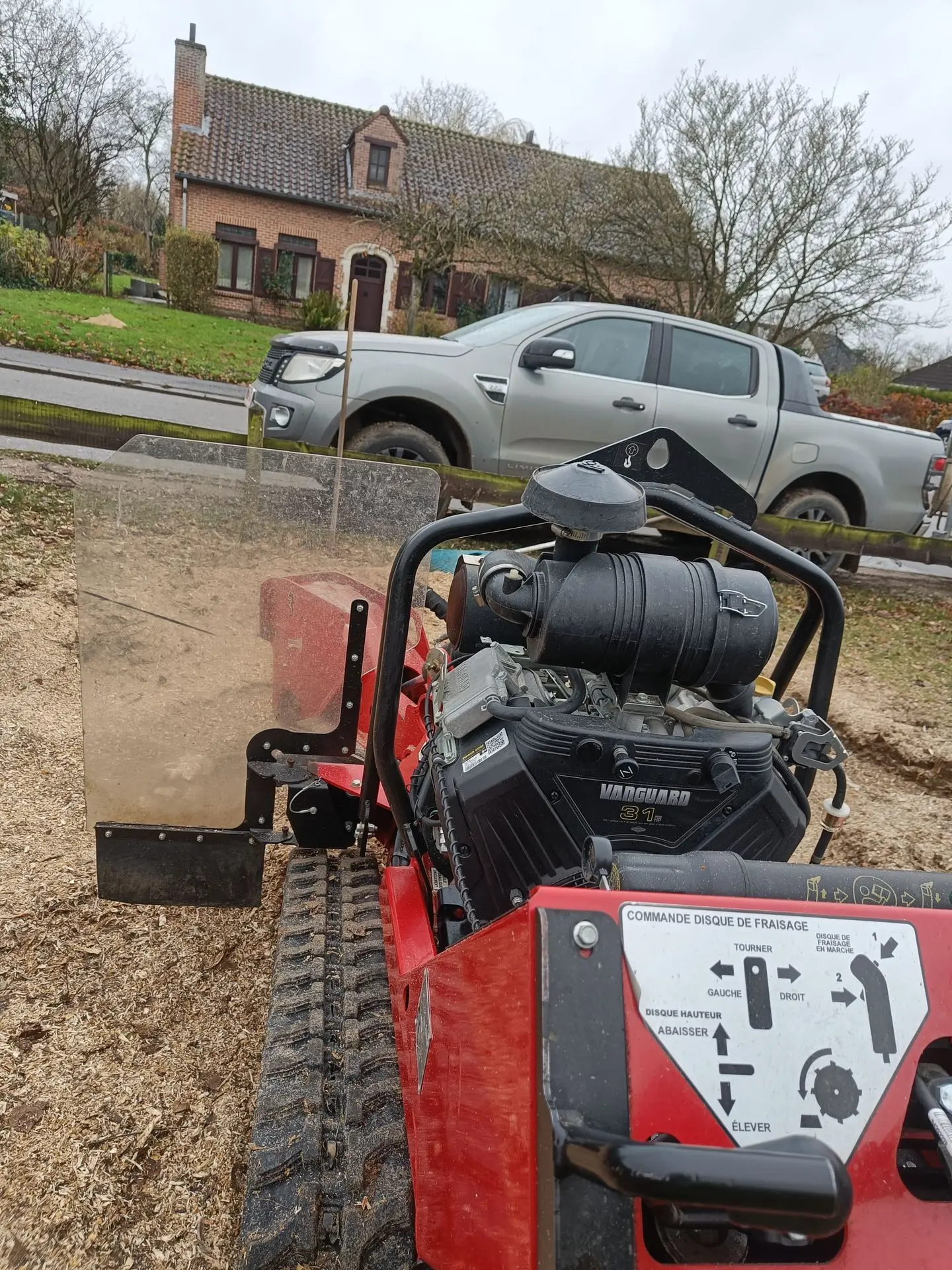 J’évalue la souche et l’accès, puis je la broie jusqu’à une profondeur adaptée à votre besoin (simple remise à niveau, pelouse, future plantation…).